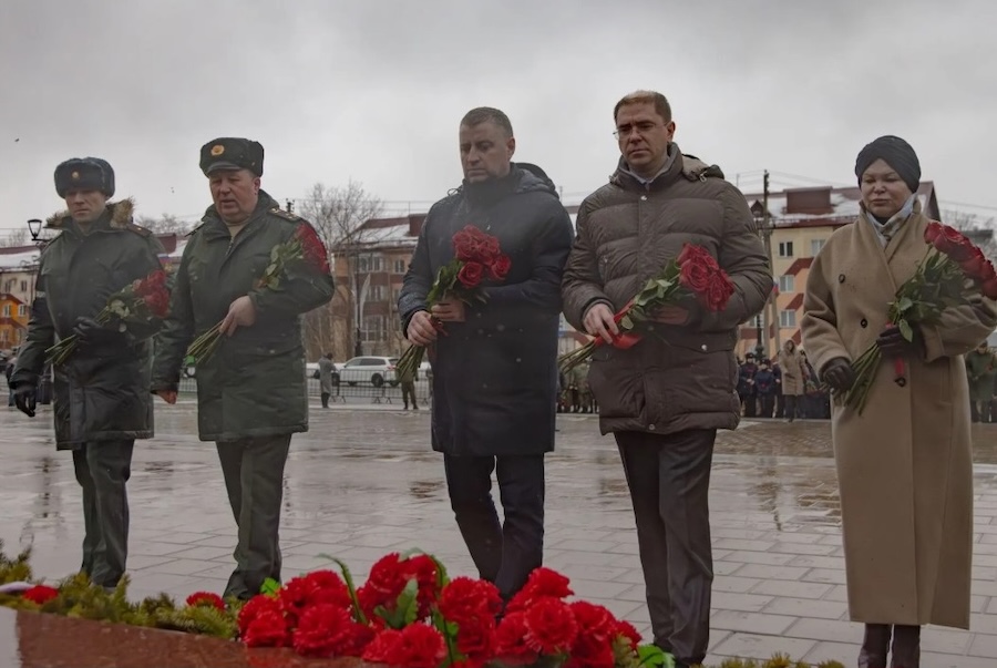 В Южно-Сахалинске в День защитника Отечества состоялась церемония возложения цветов к Вечному огню на площади Славы. В мероприятии принял участие председатель правительства Сахалинской области Алексей Белик.